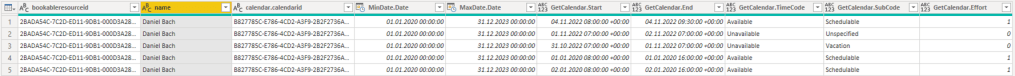 There is a way to call the Web API and expand the calendar to get the full details. Here we only need the “calendarid” from our Resource (bookableresource) with the date range we are using in our report and we are ready to go.