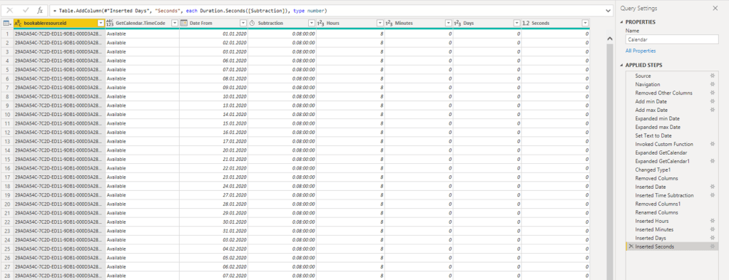 For the playthrough i added a Template file where i was using the dataverse connector initially until reaching the limits and switched to oData. But there you can evaluate the power query function. Calendar Retrieve PBIT